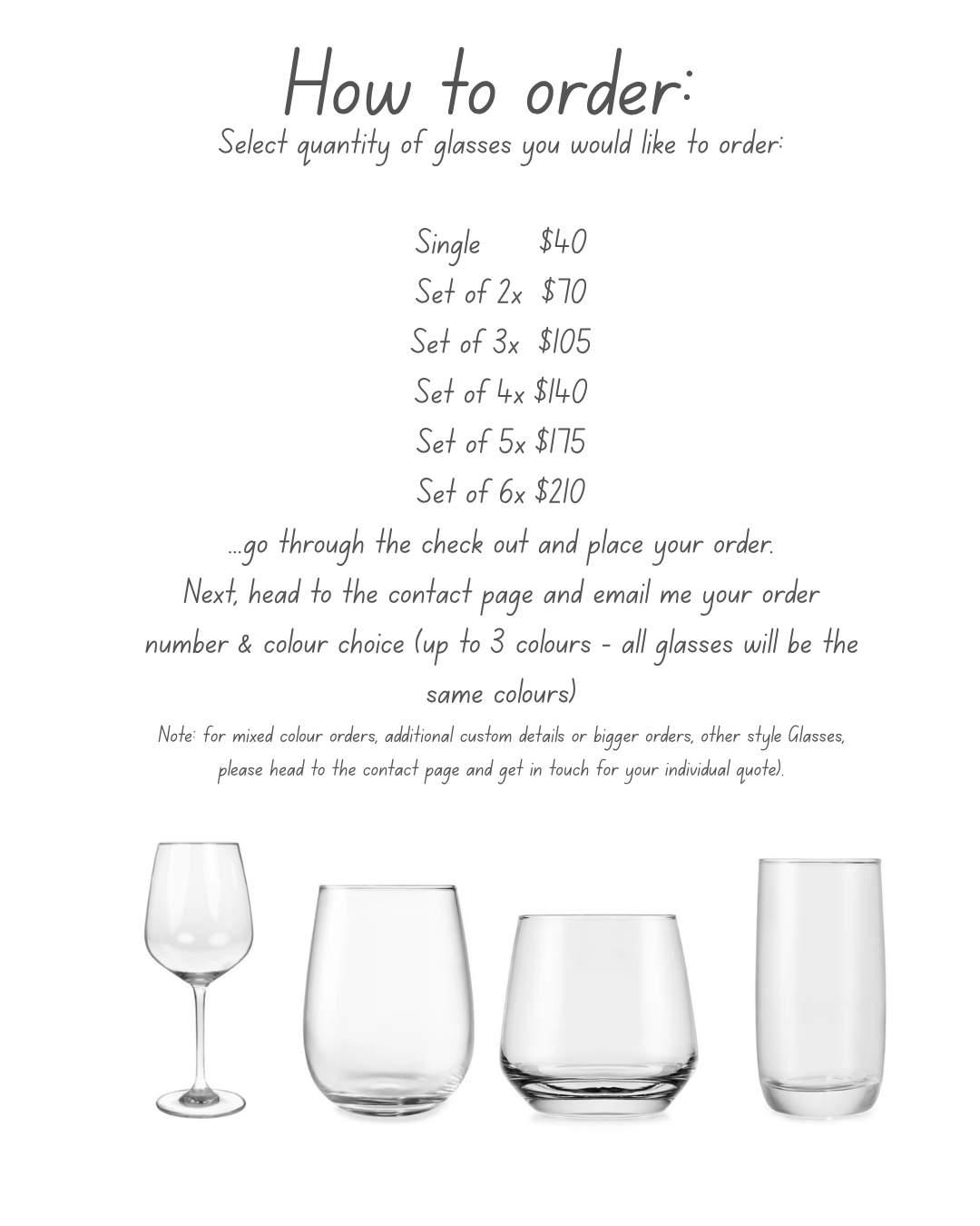 Next, head to the contact page and email me your order number & colour choice (up to 3 colours - all glasses will be the same colours)